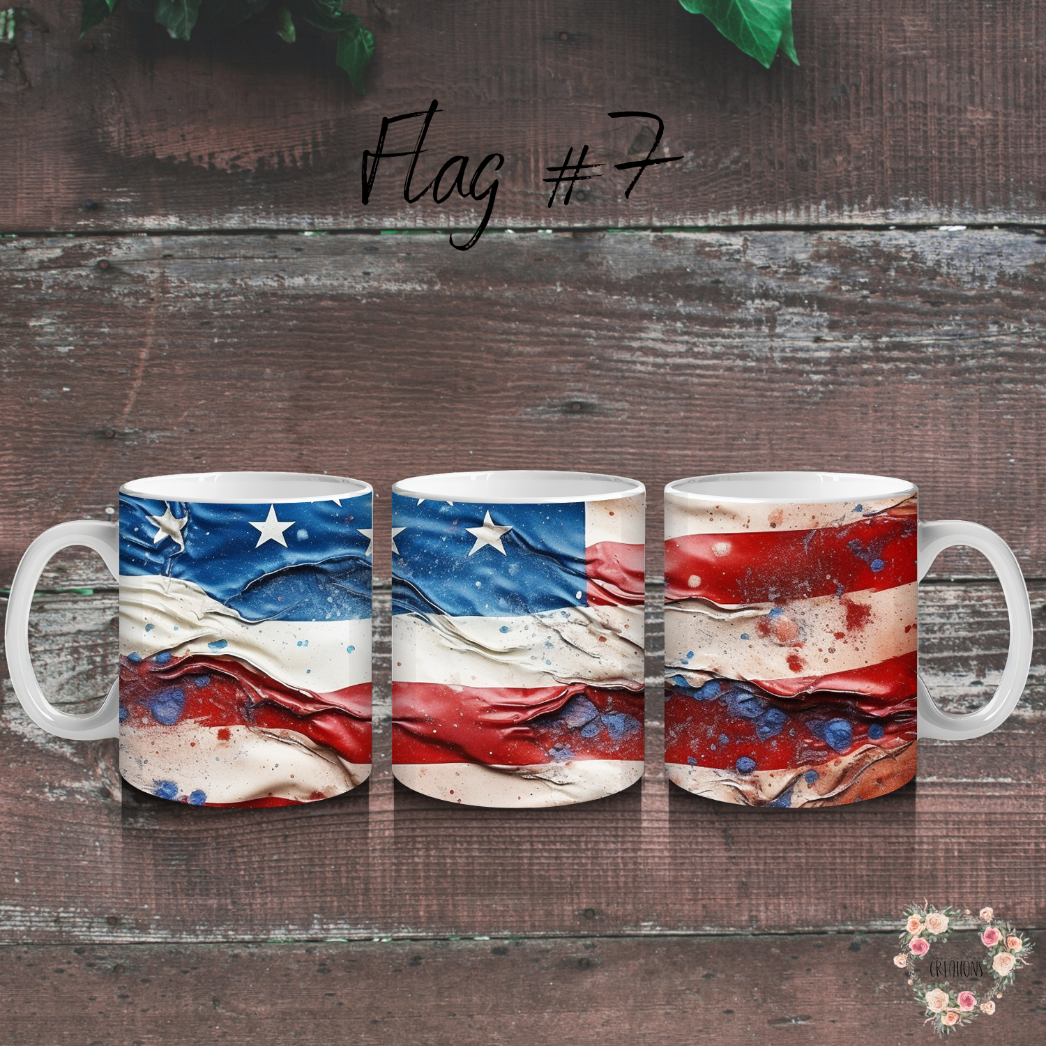 Available Design: Flag #7 – A bold and slightly weathered flag, symbolizing strength and resilience through every sip.