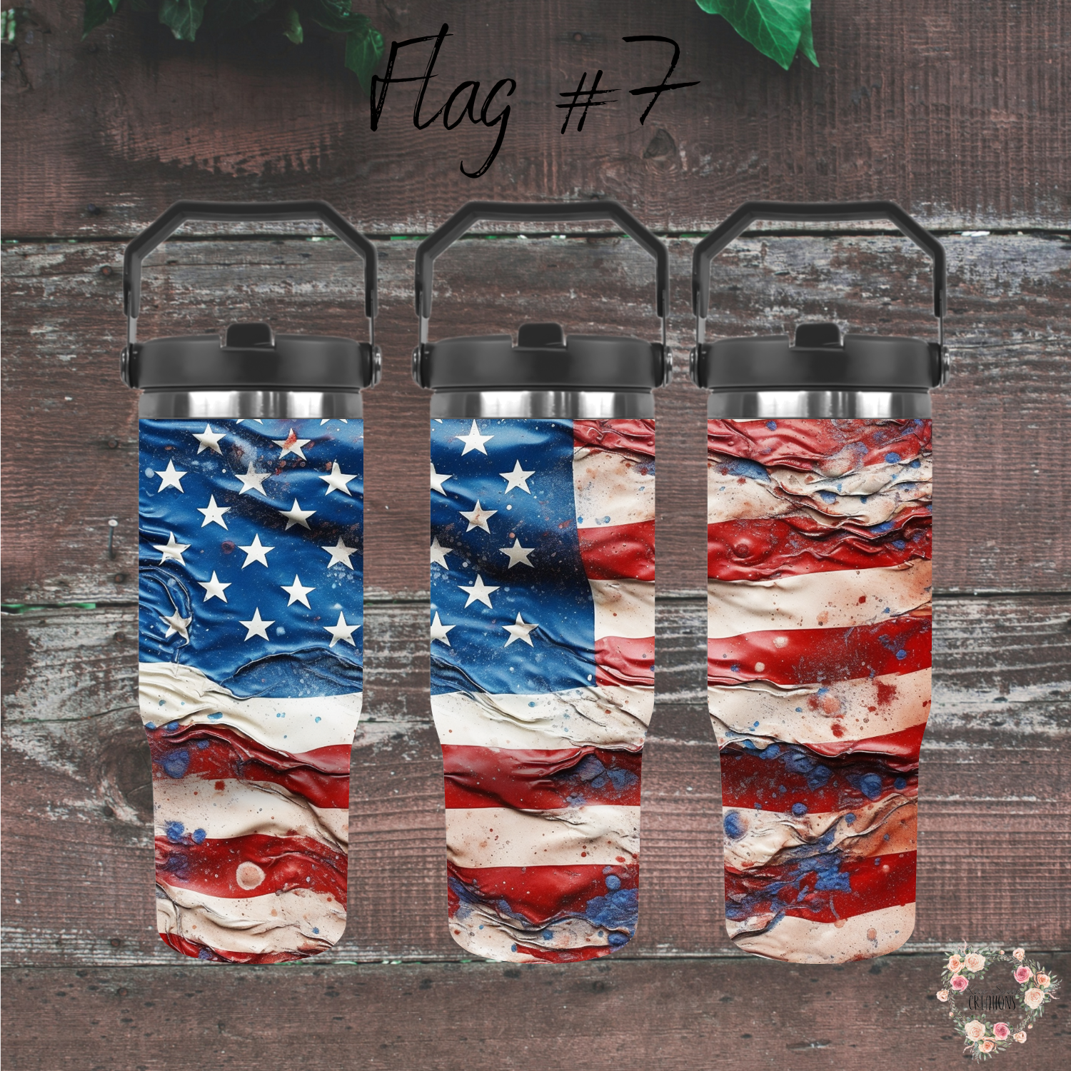 Show off your patriotic pride with the Flag Collection! These tumblers feature stunning variations of the American flag in artistic, rustic, and bold designs. Whether you're celebrating Fourth of July, Memorial Day, Veterans Day, or simply love showing your American spirit, these tumblers are the perfect way to carry the red, white, and blue wherever you go!
