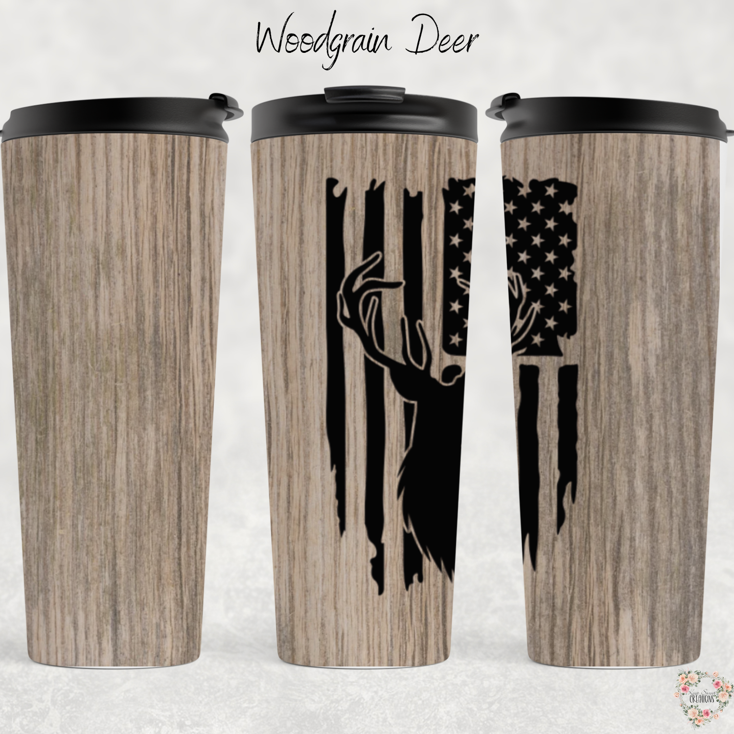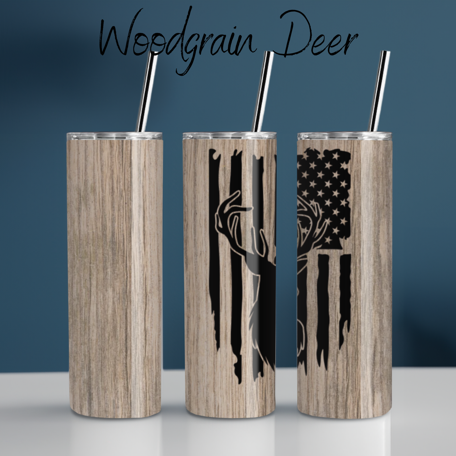 Woodgrain Deer Tumbler – Rugged Charm Meets Everyday Utility